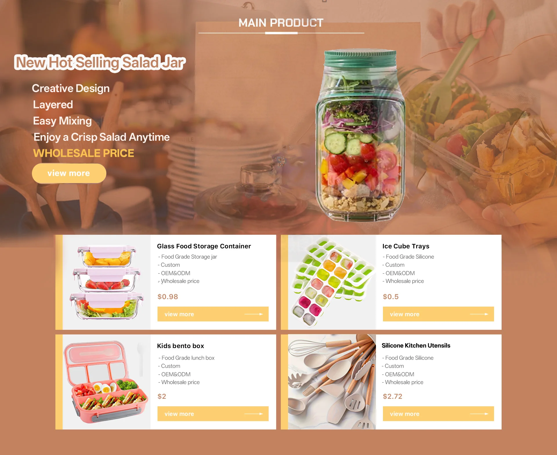 Productos principales:Mantel Individual de silicona para bebé, bandeja de hielo de silicona, fiambrera plegable de silicona, guantes de silicona para barbacoa, babero de silicona para bebé