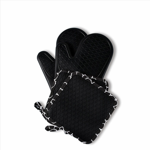 Tùy chỉnh tổ ong hai ngón tay Silicone bông dày găng tay nướng Silicone lò vi sóng găng tay lò cách nhiệt